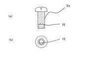 また、図1に示すパワーモジュール3のヒートシンクのねじ孔7aと対向する位置には、図5に示すように、パワーモジュール固定ねじを挿通するための孔部3bが、パワーモジュール3の上面から一段下がった凹状の取付座3aに設けてある。1 is a side sectional view of a power module mounting structure showing an embodiment of the present invention, FIG. 5 is an overall perspective view of the power module, and FIG. 6 is a diagram showing an appearance of a power module mounting screw of the present embodiment, (A) is the front view, (b) is a bottom view (groove for driver), FIG. 7 is a view showing the appearance of the power module mounting screw of this embodiment, (a) is the front view, ( b) is a bottom view (wrench groove).