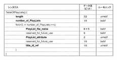 図10は、ブロックMovieObjects()の一例の構造を表すシンタクスを示す。フィールドlengthは、32ビットのデータ長を有し、このフィールドlengthの直後からこのブロックMovieObject()の終わりまでのデータ長を示す。32ビットのデータ長を有する予約領域を介してフィールドnumber_of_mobjsが配される。フィールドnumber_of_mobjsは、直後のforループ文に従い格納されるムービーオブジェクトの数を示す。forループ文のループ変数として用いられる値mobj_idで、ムービーオブジェクトが一意に特定される。値mobj_idは、0から始まる値で、ムービーオブジェクトは、forループ文中に記述される順序により定義される。 FIG. 10 shows syntax that represents an example of the structure of the block MovieObjects (). The field length has a data length of 32 bits, and indicates the data length from immediately after this field length to the end of this block MovieObject (). Field number_of_mobjs is arranged through a reserved area having a data length of 32 bits. A field number_of_mobjs indicates the number of movie objects stored according to the immediately following for loop statement. A movie object is uniquely identified by a value mobj_id used as a loop variable of a for loop statement. The value mobj_id is a value starting from 0, and the movie object is defined by the order described in the for loop statement.