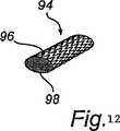 図12を参照して、左心耳(LAA)又は右心耳(RAA)に挿入されるように適応させた第6の切断用具94が示される。第6の切断用具94は、LAAの開口部の楕円形態に合うように楕円状の断面を有する管状部96を備える。RAAに挿入されるように適応させた第6の切断用具94は、RAAの開口部に合うようにあまり楕円状ではない断面を持つ管状部96を有する。第6の切断用具94は、左心房内部のLAAの開口部又は右心房内部のRAAの開口部の中に挿入されるように適応させる。第6の切断用具94は、開口部にて心房壁を通ってその管状部96を拡張することによって形状をさらに変化させる。従って、LAA又はRAAは、心臓組織の残りの部分との電気的接触から完全に分離される。第6の切断用具94の管状部96は、かなり短く、心耳の開口部からその壁に沿って心耳の中に伸びる。さらに、管状部96は漏斗形状であってもよく、それによって心臓壁全体に貫入しない断面を想定するために管状部96の一部は、形状を変化させるように設計されてもよい。管状部のこの部分は、その後、その場で第6の切断用具94を保持するのに役立ってもよい。さらに、管状部96のもう1つの部分は、心臓の残りの部分から心耳を効果的に電気的に隔離するために心臓壁全体に貫入する。LAAに挿入されるように適応させた第6の切断用具94は、切断アーム(図示略)を備えてもよく、それは、形状を変化させてLAAからLSPVに挿入された第4の切断用具68まで広がる心臓組織に貫入するように適応させる。さらにLAAに挿入されるように適応させた第6の切断用具94は、LAAの開口部に最も近く挿入される管状部の端部を覆う被膜98を備えてもよい。管状部96が心臓壁で拡張されると、被膜98がLAAの開口部を覆い、心臓を通る血液循環からLAAを除外し、それによってLAAにおける血栓の転位及び凝血塊形成を回避する。  Referring to FIG. 12, a