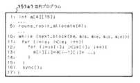 さらにまた、本発明の並列プログラム生成プログラムは、前記ページ割付け決定工程が、前記データ分散対象配列の配列要素が配置された各ページを割り付けるプロセッサの決定を、データ分散対象配列の各次元の配列要素数,ページサイズおよびプロセッサ台数に応じて、1ページまたは数ページずつのラウンドロビンで行うことを特徴とする。