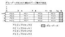 第2の問題点は、従来技術では、仮想アドレス空間における論理的なページ境界を各プロセッサのメモリにおける物理的なデータ分散境界に一致させるためにダミーデータを挿入するようにしていたので、データ分散対象配列の配列要素が配置された各ページのページ割付け先のプロセッサと並列化可能ループをループ繰返し範囲で分割した各分割ループの実行割当て先のプロセッサとを一致させる際に、データ分散対象配列の配列要素のデータ連続性を破壊することである。