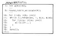 この従来の並列プログラム生成方法は、図4に示す逐次プログラム150aに適用する場合、以下のように動作する。ここで、逐次プログラム150aは、4行15列の2次元配列aを参照(アクセス)する2重ループを含み、この2重ループの内側のループを並列実行するプログラムである。ただし、この例では、ターゲットマシンとする分散共有メモリ型並列計算機のプロセッサ台数は4台、ページサイズは2次元配列aの配列要素4つ分、2次元配列aは1次元目(添字jの次元)がメモリ上でデータが連続する次元(以下、データ連続次元と略記する)であり、その配列要素は行優先順序で仮想メモリ空間のページに配置され、各ページが割り付けられるプロセッサが決定されるものとする。