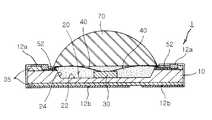 上記のように基板10に付着されたレンズ部70は、図5に断面で図示された通り、基板10の電極連結溝52には位置しない。このように電極連結溝52にレンズ部70が位置しないことにより、電極連結溝52を通じたワイヤ40の配置が可能でワイヤ40の結線部分に障害を与えない。  As described above, the