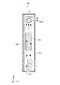 図12は、上記した各横流送風装置10、20等のうちいずれかの横流送風装置が搭載された電子機器を示す模式的な断面図である。図12では、電子機器100として例えば液晶ディスプレイ等のFPD(Flat Panel Display)装置を示す。FPD装置100は、筐体101内に、ファン104、横流送風装置10及び発熱体として回路基板等を有するディスプレイパネル102、電源等のその他の部品103が収容されている。ディスプレイパネル102から発生する熱が筐体101にこもる。ファン104により筐体101内に外気が吸入され、横流送風装置10が動作することにより、熱を含む空気を、例えば筐体101に形成された排気口101aを介して外部へ排出することができる。  FIG. 12 is a schematic cross-sectional view showing an electronic device in which any one of the above-described