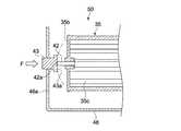 図8は、本発明のさらに別の実施の形態に係る横流送風装置の一部を示す断面図である。この横流送風装置40の支持体46には、上記ピボット軸42を軸方向に、力Fで押圧する押圧部材41が取り付けられている。押圧部材41は、ピボット軸42の先端42aが接触するピボット座面41aを有する。この押圧部材41は、金属、樹脂、またはゴム等でなる。  FIG. 8 is a cross-sectional view showing a part of a cross-flow blower according to still another embodiment of the present invention. A pressing