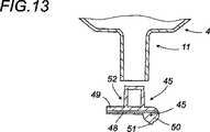 胴体部1の上部面は漏斗形蓋部4により閉じられており、中心部内には、わずかに先を細くされ、かつ円錐形状である排気口管11を有する。蓋部4はその基部から、カップ1の胴体部側面の上方部12上にねじ止めされ、カップ上には13などのいくつかの連続的なリブ部が形成され、このリブ部は、たとえば不連続な、カップ胴体部上にねじ止めすることにより蓋部4の対応するねじ山形成部を受けるねじ山を形成する。蓋部には図8に示される内方のショルダー部14を有し、円盤形フィルター部15の周縁部を支持する。フィルター部は外周部環状接合部16(図3を参照のこと)により囲繞される。The upper surface of the