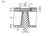なおここでは、電極パッド(内部電極26、素子面電極27)が2個配置された例を示したが、電極パッドは少なくとも2個以上配置されていれば良い。例えば、内部電極26と素子面電極27間の層間絶縁膜13内に、1個あるいは複数個の電極パッドが配置されていても良い。またここでは、層間絶縁膜13内に配線14が3層形成された例を示している。  Although an example in which two electrode pads (