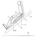 椅子部20は、図1ないし図3に示すように、傾斜ガイド部材10の長さ方向に沿ってスライド可能なスライダー21を有する。このスライダー21の上面には座椅子22が固定されている。この座椅子22は、臀部が後述のベルト28により固定状態に載置される座部23と、着脱可能な背もたれ部24を有し、座部23に対し背もたれ部24の角度が調整可能とされている。スライダー21の底面には、傾斜ガイド部材10の幅方向両側に配置される計一対の垂直部材25,25が固定されている。As shown in FIGS. 1 to 3, the