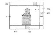 図9および図10は、本実施の形態における携帯電話3の表示処理において画像表示部32に表示される画面の例を示した図である。図9に示す画像40は、入力コマンドが入力され、カメラ2の駆動部23が駆動している状態で撮影された画像である。また、図9におけるスクロールバー400,410,420は、カメラ2の駆動部23のパン、チルトおよびズームの駆動可能範囲をそれぞれ表示するものである。なお、各スクロールバーにおける駆動部23の駆動可能範囲は、携帯電話3が予めメモリ37に記憶している駆動部23の駆動可能範囲に基づいて生成される。