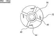 図14(a)、図14(b)は、この種の動作のためのハブ7の設計を示している。軌道40が再び設けられているが、片持アームの端部の出発点は、軌道40に沿った中央(あるいは任意の他の中間位置)であり、分岐52の内側である。この分岐は、片持アームを所定位置に保持するように設計されているとともに、主たる軌道40への案内表面を提供し、かつスリーブのわずかな回転を生じさせる。アームが軌道に入ったならば、分岐52の中へは戻ることができないように、小さい段差部分54がある。  FIGS. 14A and 14B show the design of the