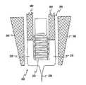 次に図8、9及び10を参照すると、もう一つの試験センサ装置200が使い捨て保護エンドキャップ350として適用されている。臨床の場、たとえば、使用者が多数の患者を診る医者、看護人又は技術者である医者の診療所では、相互汚染が深刻な問題である。ある患者の血液と接触する医療装置の部品を使用者又は別の患者と接触させてはならないことは明白である。エンドキャップ350は、エンドキャップ350内の試験センサ/ランセット200が使用されたのち、エンドキャップ350を扱う人を、ランス206又はランスに付いた血液との接触から保護する。起動された場合(試験中)のみ、ランス26は、エンドキャップ350によって画定される区域の外に延びる。したがって、使用者(医師、看護人、技術者)は、エンドキャップ350を試験センサ装置200に接続したり、エンドキャップ350をセンサ/ランセット200から取り外したりするとき、ランス206による穿刺から保護される。
