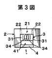 特に本実施の形態では、弾性挟持片31,31は基端が一体化して前記止着部2における外周面23に連設されており、先端側が互いに遊離していて対向面32,32が前記翼状針6の一方の羽根65を起てた状態で両側面を挟持するものであり、特に、前記対向面32,32は平面において長さ方向の中央部に互いに接近するように(少なくとも使用する前記第7図に示した翼状針6の羽根65の厚さよりも接近指せた状態)弓形に形成されて先端に向けて拡開しているとともに互いの対向面32,32の先端側と頂面側の端縁が傾斜面33,33,34,34にそれぞれ形成されて上方に向けて拡開している。