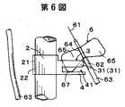 そして、第6図に示すように、前記チューブ63の先端に接続された翼状針6を保持させるのであるが、保持は、点滴容器や輸血容器を点滴台7の支柱71にセットしたとき、次いで、キャップ66を外したとき、翼状針6を差し直すとき、更には点滴や輸血が終了したときなど手にした翼状針6を一旦どこかに起きたい場合のいずれのときにも保持させることができる。