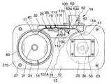 カバープレート22の突起部95は、前側の室32aと後側の室32bに対応一致するように前後2つに分割された前側凸部95Aと後側凸部95Bとで構成されている。また、前側凸部95Aと後側凸部95Bは、前側の室32aと後側の室32bとの隙間を塞ぎシール性能を高めるために表面がゴム等によってそれぞれ被覆されている。さらに、後側凸部95Bには、曝露部43に嵌合する突出部分95aが一体に突設されている。  The