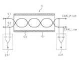 したがって、車載装置間で伝送される信号は、回転数、角度、温度等の数値情報を伝送するデータ信号のみならず、伝送量の大きい映像信号も含まれる場合もある。この場合、CAN(Control Area Network)等の差動信号を伝送する車内通信回線以外に、映像信号を伝送するための高速の通信回線を別途敷設する必要が生じる。 Therefore, the signal transmitted between the in-vehicle devices may include not only a data signal that transmits numerical information such as the rotation speed, angle, and temperature, but also a video signal with a large transmission amount. In this case, it is necessary to separately install a high-speed communication line for transmitting a video signal in addition to an in-vehicle communication line for transmitting a differential signal such as CAN (Control Area Network).