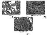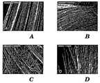 別のクラスの修飾としては、特定の構造特性を与えるためまたは絹フィブロインの元の表面およびその生物学的特性を改変するため(図16A〜C:コラーゲン繊維へのBMSCの播種を参照)、他のポリマーを(例えば繊維またはゲルの形態で)布に組み込むことがある。1つの種類の組み込みにおいては、布を作る過程で絹および別の材料の繊維またはヤーンを混合する。別の種類の組み込みにおいては、絹を基礎とする繊維、ヤーン、または布を、別のポリマーの溶液または繊維でコーティングするかまたは巻き付ける。混合は、(i)ランダムな混合(例えば、ツイスト加工する前に絹とポリマーと(の1つまたは複数の繊維)を並列に撚り合わせる)、または(ii)秩序だった様式による混合(例えば、ヤーンまたは布を作るための繊維またはヤーンの機械への投入位置を交互にし、したがって結果が予測できるようなブレード加工)であってもよい。コーティングまたは巻き付けは、中心コア上にブレード加工またはケーブル加工することによって行ってもよい。このコアは、所望の効果に応じて、ポリマー、絹フィブロイン、または両者の複合体であってもよい。または、1つのヤーンを制御された様式で他のポリマー上に巻き付けてもよく、この巻き付け用ヤーンは構造を安定化させるために用いてもよい。任意の生体適合性ポリマーを使用できる可能性がある。好適なポリマーの例としては、タンパク質(特にコラーゲンおよびフィブリンなどの構造タンパク質)ならびに補強性の分解性合成ポリマー(例えば無水物、ヒドロキシ酸、および/または炭酸塩を含むポリマー)などがある。コーティングは、天然ポリマーまたは分解性の合成ポリマーで作られたゲル、特に分解性ゲルとして提供してもよい。フィブリン、コラーゲン、および/または基底膜タンパク質を含むゲルを使用してもよい。ゲルは、細胞もしくは栄養を送達するため、または表面を細胞接着から遮蔽するために使用してもよい。さらに、タンパク質もしくはペプチドを繊維に共有結合させてもよく、または帯電気体(例えば窒素)中で繊維をプラズマ修飾してアミン基を付着させてもよい。絹は通常疎水性であるがこれらのコーティングによって繊維の親水性が高くなるため、これらのコーティングはいずれも細胞の接着および埋植物内への増殖を補助する。 Another class of modifications is to give certain structural properties or to modify the original surface of silk fibroin and its biological properties (see Figures 16A-C: Seeding BMSCs on collagen fibers), etc. May be incorporated into the fabric (eg, in the form of fibers or gels). In one type of incorporation, silk and another material fiber or yarn are mixed in the process of making the fabric. In another type of incorporation, silk-based fibers, yarns, or fabrics are coated or wrapped with another polymer solution or fiber. Mixing can be (i) random mixing (eg, twisting silk and polymer (s) in parallel before twisting), or (ii) mixing in an ordered manner (eg, It may also be blade processing in which fibers or yarns for making yarns or fabrics are alternately placed in the machine and therefore the results can be predicted. Coating or winding may be performed by blade machining or cable machining on the central core. The core may be a polymer, silk fibroin, or a composite of both depending on the desired effect. Alternatively, one yarn may be wound on another polymer in a controlled manner and this wrapping yarn may be used to stabilize the structure. Any biocompatible polymer could be used. Examples of suitable polymers include proteins (especially structural proteins such as collagen and fibrin) and reinforcing degradable synthetic polymers (eg, polymers comprising anhydrides, hydroxy acids, and / or carbonates). The coating may be provided as a gel made of natural polymers or degradable synthetic polymers, in particular as a degradable gel. Gels containing fibrin, collagen, and / or basement membrane proteins may be used. Gels may be used to deliver cells or nutrients or to shield surfaces from cell adhesion. In addition, proteins or peptides may be covalently attached to the fiber, or the fiber may be plasma modified in a charged gas (eg, nitrogen) to attach amine groups. Silk is usually hydrophobic, but these coatings both increase the hydrophilicity of the fibers, so that both of these coatings assist in cell attachment and propagation into the plant.