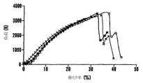 本発明の1つの態様においては、整列させたセリシン除去カイコフィブロイン繊維を、1cm当たり撚り数0〜11.8回となるように互いにツイスト加工した(表6および7を参照)。 In one embodiment of the present invention, aligned sericin-removed silkworm fibroin fibers were twisted together so that there were 0-11.8 twists per cm (see Tables 6 and 7).