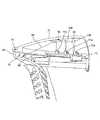 一方、キャビネット70のキャビネット天井面70aの上部面の略中央部には上部ランプ21に対応するように本体前面側に向かって弧を描くように略半円型の切欠部74が設けられている。また、切欠部74の内縁部には、鍔部73を嵌入可能とする凹部75が形成されている。また、キャビネット天井面70aの内側縁部には、レンズ部材72の設置時に上述のねじ穴部84と対向する箇所にあるねじ受け部86が備えられている。  On the other hand, a substantially