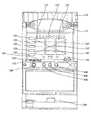 また、図4は、図2に示した扉部3の部分縦断面図である。レンズ部材72の鍔部73はキャビネット天井面70aの凹部75と嵌合されて設置されており、レンズ部材72と発光ダイオード基板71はボス90の部分で結合固定されている。この設置状態において、発光ダイオード基板71に対しレンズ部材72の光透過面を可及的に近接させ、上部ランプ21のキャビネット天井面70aの上面からの突出量をできるだけ低くすることが好ましい。  4 is a partial longitudinal sectional view of the