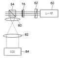 また、図4に示す構成で、レンズ66として短焦点距離のレンズを用いる場合には、レンズ66と偏光ビームスプリッタ64とが接近し過ぎてしまい、レンズ66と偏光ビームスプリッタ64との間に1/4波長板78を配置することが物理的に困難になる。この場合に、図6に示すように、長焦点距離のレンズ86を、レンズ66と偏光ビームスプリッタ64との間に挿入することが好ましい。  In the configuration shown in FIG. 4, when a lens having a short focal length is used as the