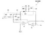 図6は、タッチ検出動作を行う検出回路8の一構成例を表すものである。この検出回路8は、信号増幅用のオペアンプ81と、高域をカットし低域を通過させるローパスフィルタ(LPF)82と、高域を通過させるハイパスフィルタ(HPF)83と、整流平滑部84と、コンパレータ85とを有する。オペアンプ81の正入力端(+)には、入力端子Tinが接続され、ここから検出信号Vdet が入力されるようになっている。オペアンプ81の出力端は、LPF82を介して整流平滑部84に接続されている。LPF82にはHPF83が接続されている。LPF82は、抵抗82Rとキャパシタ82Cとを並列接続した構成であり、HPF83は、接地との間に抵抗83Rとキャパシタ83Cとを直列接続した構成である。LPF82とHPF83との接続点はオペアンプ81の負入力端(−)に接続されている。整流平滑部84は、半波整流用のダイオード84Dからなる整流部と、接地との間に抵抗84Rおよびキャパシタ82Cを並列接続してなる平滑部とを含む。整流平滑部84の出力端はコンパレータ85の正入力端(+)に接続されている。このコンパレータ85の負入力端(−)には所定のしきい値電圧Vth(図3参照)が入力されている。コンパレータ85の出力端は出力端子Tout に接続され、ここから検出結果(タッチされたか否か)が出力されるようになっている。  FIG. 6 illustrates a configuration example of the detection circuit 8 that performs the touch detection operation. The detection circuit 8 includes an