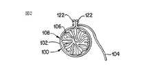 糸状の結合部材(104)は又、延伸ポリテトラフルオロエチレン(ePTFE)を含んでいても良い。又、例えばポリエチレンテレフタレート(DACRON(登録商標)やMYLAR(登録商標))等のポリエーテル類や、KEVLAR(登録商標)等のポリアラミド類、又はニチノール、ステンレス鋼、金を含む金属ワイヤーの縫合糸が、結合部材(104)のために使用されても良い。結合部材(104)は、以下で説明するように、遠隔操作のためのリモート引張線(remote pull line)を形成するために延長されても良い。あるいは、例えばステンレス鋼等を含む金属製の引張線が、例えば延伸ポリテトラフルオロエチレン等を含む非金属性の結合部材(104)へ結合されても良い。この結合は、金属製の引張線をそれ自身の上に折り返してアイレットを形成し、このアイレットに結合部材を通して、アイレットへ結んで固定することによって行われても良い。 The thread-like coupling member (104) may also include expanded polytetrafluoroethylene (ePTFE). For example, polyethers such as polyethylene terephthalate (DACRON (registered trademark) and MYLAR (registered trademark)), polyaramids such as KEVLAR (registered trademark), or metal wire sutures including nitinol, stainless steel, and gold May be used for the coupling member (104). The coupling member (104) may be extended to form a remote pull line for remote operation, as described below. Alternatively, a metal tensile wire including, for example, stainless steel may be bonded to a non-metallic bonding member (104) including, for example, expanded polytetrafluoroethylene. This coupling may be performed by folding a metal tension wire over itself to form an eyelet, passing the coupling member through the eyelet and tying it to the eyelet.