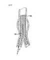 ステント又はステント移植片セグメントの構造特性を選択的に変更する別の方法は、図14A及び15において示されている。伸ばされた支柱部(718)及び(719)は、ステント移植片セグメントの軸方向剛性を増加するために使用され得る。伸ばされた支柱部は、波状のワイヤの一つの巻回上の一つの頂部を、それが隣接した巻回上の頂部と接触するまで伸ばすことによって形成される。伸ばされた支柱部と隣接したステントの巻回の頂部との間のこの接触は、軸方向剛性を高める。好ましい実施態様において、伸ばされた支柱部の各頂部を覆う螺旋状パターンで、一層のテープ(図示せず)が装置の周りに付与される。この追加された層のテープは、支柱部の組をまとめておくようにする。 Another method for selectively changing the structural characteristics of a stent or stent-graft segment is shown in FIGS. 14A and 15. Stretched struts (718) and (719) can be used to increase the axial stiffness of the stent-graft segment. The stretched strut is formed by stretching one top on one turn of the undulating wire until it contacts the top of the adjacent turn. This contact between the stretched strut and the apex of the adjacent stent turns increases axial stiffness. In a preferred embodiment, a layer of tape (not shown) is applied around the device in a spiral pattern covering each top of the stretched struts. This additional layer of tape keeps the set of struts together.