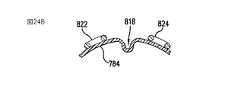 上記のように、本体(700) と対側脚部(730) とは身体内部の分岐部位に圧縮状態で搬送されるようになっている。この目的で本体(700) は好ましくは上記のように構成された拘束部材(722) が設けられる。同様に、対側脚部(730) は取付けられた拘束部材(732) を有している。これらの拘束部材は典型的にはその全長にわたって所定の間隔で移植片材料に縫いつけられる。 As described above, the main body (700) and the contralateral leg (730) are transported in a compressed state to a branch portion inside the body. For this purpose, the body (700) is preferably provided with a restraining member (722) configured as described above. Similarly, the contralateral leg (730) has a restraining member (732) attached thereto. These restraining members are typically sewn to the graft material at predetermined intervals over their entire length.