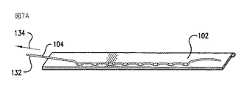 拘束部材の幅は、図4Aに示すような平坦な状態の時には、インプラントの直径より小さい事が好ましい。一般的には、拘束部材の幅は約40mm未満であり(胸部大動脈に適用する装置の場合には、一般に約25から40mm)、内腔がより小さい用途においては、一般に、約15mm未満である。好ましくは、材料シートの厚さは、0.254mm(0.010inch)未満であり、より好ましくは、0.127mm(0.005inch)未満である。更に、拘束部材の長さは、インプラントの長さと等しいか、それ未満であることが好ましい。 The width of the restraining member is preferably smaller than the diameter of the implant when in a flat state as shown in FIG. 4A. In general, the width of the restraining member is less than about 40 mm (typically about 25 to 40 mm for devices applied to the thoracic aorta) and is generally less than about 15 mm for smaller lumen applications. . Preferably, the thickness of the material sheet is less than 0.254 mm (0.010 inch), more preferably less than 0.127 mm (0.005 inch). Furthermore, the length of the restraining member is preferably equal to or less than the length of the implant.