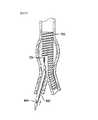 図面に示されたステント移植片の実施例を参照して搬送装置について述べたが、図示のものとは異なる構造の他の装置、ステント又はステント移植片と共に用いることができることが理解されるべきである。例えば、ここに記載された搬送装置は以下に詳細に記載されるような分岐したステント又はステント移植片と共に用いることができる。さらに、自己拡張式ステント移植片が記載されているが、バルーンにより拡張せしめられるバルーン拡張式ステント移植片もまたここに記載された搬送装置と共に用いることができる。これらのステント移植片では、つぶされた自己拡張式ステントに蓄えられるばねエネルギーとは対照的に、ステント移植片を拡張された状態まで拡張するバルーンが必要とされる。 Although the delivery device has been described with reference to the stent-graft embodiment shown in the drawings, it should be understood that it can be used with other devices, stents or stent-grafts of construction different from that shown. is there. For example, the delivery device described herein can be used with a bifurcated stent or stent-graft as described in detail below. Further, although self-expanding stent-grafts have been described, balloon-expandable stent-grafts that are expanded by a balloon can also be used with the delivery device described herein. In these stent grafts, a balloon is required to expand the stent graft to its expanded state, as opposed to the spring energy stored in the collapsed self-expanding stent.