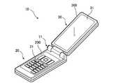 ここで、携帯電話機を例に挙げると、本体ユニットとその本体ユニットに対し開閉自在な表示ユニットとを備えた携帯電話機の場合、本体ユニットと表示ユニットとの間を信号線で接続して信号を送受する必要があり、このため、この信号線は本体ユニットの筐体から一旦外に出て再び表示ユニットの筐体内に入るという配線ルートを取ることになる。このため、このタイプの携帯電話機に防水性を付与しようとしたとき、信号線が筐体の壁と重なる部分に如何なる防水構造をもたせるかが問題となる。 Here, taking a mobile phone as an example, in the case of a mobile phone having a main unit and a display unit that can be opened and closed with respect to the main unit, the signal is transmitted by connecting the main unit and the display unit with a signal line. For this reason, this signal line takes a wiring route that once goes out of the casing of the main unit and then enters the casing of the display unit again. For this reason, when it is intended to provide waterproofness to this type of mobile phone, there is a problem as to what waterproof structure the signal line overlaps with the wall of the housing.
