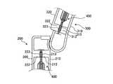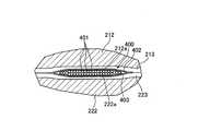 この拘束部品403は、ケーブル400が垂壁212と立壁222とに挟まれた部分においてチューブ402の内部に配置され、複数本の信号線401を取り囲んでそれら複数本の信号線を扁平な形状に拘束する役割りを担っている。この拘束部品403は、薄い金属製又は樹脂製のものであり、複数の信号線を全体として規定の扁平度に保持することができ、また、その拘束部品403によってチューブ402のしわの発生が抑えられてチューブ402と両面テープ213,223との密着性が向上する。  The