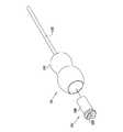 図5は本発明の一定の実施形態による工具28の詳細を示している概略的で絵画的な図である。この工具28は一定のハンドル100および一定の軸部102を含む。さらに、一定の工具センサー104がハンドル100の内側の一定の適当なレセプタクルの中に適当に嵌合する。このセンサー104は感知および通信用の回路106を含み、この回路106は一定の電池108により電力供給される。一般的に、この回路106は、上記センサー90(図3B)におけるように、3個の感知用のコイル、一定の通信用のコイルおよび処理回路を含む。これらの感知用のコイルは上記コイル72に類似しており、場の発生装置のコイル32(図1)により発生される磁場に対するセンサー104の位置および配向を感知する。また、通信用のコイルはコンピュータ36に位置信号を送る。上記回路106の動作は従って上記の回路70および回路90におけるそれぞれの回路の動作に類似しているが、この回路106の各要素は上記のセンサー70およびセンサー90において対応する各要素よりも大きく多くの電力を消費する。  FIG. 5 is a schematic, pictorial illustration showing details of the