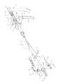 従って、今図4(イ)のように、メス刃(10)が操作パイプ(5)の延長方向に突出し、オス刃(11)が上記メス刃(10)に対し約90度に開いた起立状態にあるときに、第1駆動レバー(44)の下端部を後方へ引けば、その駆動部(46)により前部受動ハブ(24)をスプリング(26)に抗して前方へ押し、それにより第1連動軸(7)を前進させ、かくしてリンク(16)を介してオス刃(11)をメス刃(10)がわへ揺動させて両刃(10)、(11)間で切断を行う。 Therefore, as shown in FIG. 4 (a), the knife blade (10) protrudes in the extending direction of the operation pipe (5), and the male blade (11) is opened at about 90 degrees with respect to the knife blade (10). When the lower end of the first drive lever (44) is pulled rearward, the front passive hub (24) is pushed forward against the spring (26) by the drive (46). Thus, the first interlocking shaft (7) is moved forward, and thus the male blade (11) is swung toward the female blade (10) via the link (16) to cut between the two blades (10) and (11). Do.