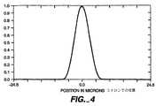 図4は、焦点が合わされる方向に沿い、ラインのあらゆる点に沿った焦点の合ったライン20の点拡張関数をグラフで示す。図4に示されているように、ライン20の点拡張関数は、488nmのアルゴンレーザが使用されれば、発生されるようなガウス形状を成す。ライン20は、ライン20の中心にピークを有し、ライン20に沿って変動する点拡張関数を示すこともある。ラインに沿った強度変動を回避するために、光線をエキスパンダ34によって10mmまたは11mmなどのより長い波長に拡張すると共にラインの中央またはラインの中央の3.3mmまたは5mmなどのラインの中央部のみを使用することが望ましいので、ラインの作像される部分に沿った倍率変化は微々たるものになる。後で説明する作像サブシステムにおける適当な口径によって、アレイ上に作像されるライン部分を制御することができる。図4に示されているように、焦点の合ったライン20の点拡張関数は、ラインに沿ってほぼ同じ形状を有するので、ライン20はほぼ一様な幅を有することになる。  FIG. 4 graphically illustrates the point expansion function of the