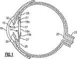 図について説明する。図1は虹彩30によって分離された前眼房12および後眼房14を有する人間の目10の断面図である。後眼房14内には生来の水晶体17を保持する嚢16がある。光は角膜18を透過して水晶体17に入射し、角膜18と水晶体17との協働により目の奥の網膜に向けて合焦される。網膜は視神経22に連絡しており、網膜が捕捉した像が脳に送られることにより像が解釈される。  The figure will be described. FIG. 1 is a cross-sectional view of a human eye 10 having an