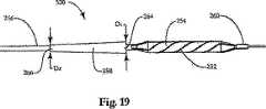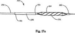 図17aおよび図17bに示す構成は、拡張式システムのコンプライアンスを制御することが可能である。一般に、切込形成構造の一端が接続されていない場合、拡張式システムのコンプライアンスは、バルーンと切込形成構造のコンプライアンスを組み合わせたものとなる。しかしながら、図17に示す拡張式システムの端部は遠位端260および近位端266で固定されているため、アタッチメント構造が拡張式システムのコンプライアンスを制御する。  The configuration shown in FIGS. 17a and 17b can control the compliance of the expandable system. In general, when one end of the incision forming structure is not connected, the compliance of the expandable system is a combination of the compliance of the balloon and the incision forming structure. However, because the end of the expandable system shown in FIG. 17 is secured at the