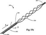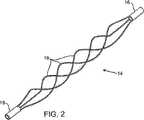 らせん状部14は、代表的には、ニチノールで構成される。らせん状部14は、ステンレス鋼、コバルト−クロム合金、チタン等、他の金属で構成されてもよい。あるいは、渦巻部14は、ポリマー製渦巻線であってもよく、他の弾性材料で構成されてもよい。らせん状部14は、その近位端および遠位端が拡張バルーン12の近位端17および遠位端18に装着されていてもよい。あるいは、渦巻部14は、カラー状アタッチメントエレメント15および16によって拡張バルーン12の遠位端および/または近位端に装着されてもよい。バネまたは他のコンプライアンスエレメントをアタッチメントエレメントの一部として代替的にまたは付加的に設けて、らせん状部が拡張した際にその短縮化に対応するようにしてもよい。  The