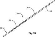 他の好ましい実施形態では、シェルと切込形成構造のアセンブリが十分な可撓性を有し、脈管構造のねじれた領域の通過を可能にするが、例えば、45°、90°以上に曲がった冠状脈管構造を進める際に10mm以下の半径で曲げることが可能である。通常、切込形成構造は1つ以上の切込形成エレメントを含み、切込形成エレメントの累積長の70%未満が、拡張時にシェル上で軸方向にそろえられるが、好ましくは、累積長の50%未満であり、より好ましくは、累積長の25%未満である。他の場合には、切込形成構造は1つ以上の切込形成エレメントを含んでもよく、切込形成エレメントの累積長は、少なくとも10mmの非軸方向コンポーネントを備えるが、好ましくは少なくとも12mmであり、より好ましくは36mmである。好ましくは、切込形成エレメントの少なくともいくつかが、膨張および収縮時ならびに膨張されている際に、その長さの少なくとも大半が常時半径方向外側に向けられた切込形成エッジを有する。「半径方向外側」とは、上記エレメントの鋭利なエッジまたはショルダーが、特にシェルが膨張しているときに、狭窄物質または処置された血管の内壁に切込を入れたり、それを切断するような方向に向けられたりすることを意味する。 In other preferred embodiments, the shell and incision forming assembly is sufficiently flexible to allow passage through torsional areas of the vasculature, but bend, for example, 45 °, 90 ° or more. When advancing the coronary vasculature, it can be bent with a radius of 10 mm or less. Typically, the cut forming structure includes one or more cut forming elements and less than 70% of the cumulative length of the cut forming elements is aligned axially on the shell when expanded, but preferably the cumulative length of 50 %, More preferably less than 25% of the cumulative length. In other cases, the incision forming structure may include one or more incision forming elements, the cumulative length of the incision forming elements comprising at least 10 mm non-axial components, but preferably at least 12 mm More preferably, it is 36 mm. Preferably, at least some of the incision elements have an incision edge whose length is always directed radially outward when expanded and contracted as well as when expanded. “Radially outside” means that the sharp edges or shoulders of the element make a cut or cut into the inner wall of the stenotic material or treated blood vessel, especially when the shell is inflated. It means being directed in the direction.