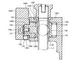一対のコラム111、112の外径は同一であるが、これに対して一対の本体貫通孔130b、130cの径は同一ではない。図3に示されるように、図の右方に形成されている一方の本体貫通孔130cの径は、図の左方に形成されている他方の本体貫通孔130bの径よりも僅かに大きい。従って、一方の本体貫通孔130cの径と一方の本体貫通孔130cに挿入されている一方のコラム112の外径との差は、他方の本体貫通孔130bの径と他方の本体貫通孔130bに挿入されている他方のコラム111の外径との差よりも大きい。更に、図5に示されるように、他方の本体貫通孔130b内には環状部材134が圧入されており、環状部材134の内径はコラム111の外径と略同一である。従って、図3の左側に形成されている他方の本体貫通孔130bの方が、右側に形成されている一方の本体貫通孔130cよりもコラム111の位置の精度が高くなるように構成されている。  The outer diameters of the pair of