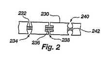 例えば、梁232は、比較的長い(ガイドワイヤの長軸の方向で測定した)が、比較的深く(長軸を横断して測定した)、したがって比較的大きな量のねじれ力を伝達する。梁236は、梁232よりも長くそして薄く、したがって切り込み238を横切るより少量のねじれ力を伝達する。図2で与えられる例において、梁240は、全ての中で最も短くかつ最も強く、そしておそらく最大量のねじれ力を伝達する。しかし、切り込み240のサイズおよび形状を考慮すると、この構成は、最も大きな柔軟性を提供し得る。切り込み234、238、および240の小さなたわみ止めギャップが、この切り込みの深さまたは全体的な形状を変化させることなく幅を変化し得るので、ガイドワイヤ部分の柔軟性は、ねじれ梁部分のサイズまたは強度に影響することなく、選択的に変更され得る。したがって、このガイドワイヤの柔軟性およびねじれ強さは、選択的かつ比較的独立して変更され得る。