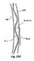 この条件はまた、このヘビ型形状に起因して、このガイドワイヤを、カテーテル内に簡単に押し詰め(wedge)ようとする。図13は、カテーテル422を通る、トルクが課されたガイドワイヤ420の可能なヘビ型経路を示す。このガイドワイヤ420の変形によって、軸方向の駆動力(図13においてFワイヤ(Fwire)と示される)がこのガイドワイヤ420に適用されると、これが、軸方向の力(F軸(Faxial)と示される)および垂直方向に向けられるウェッジング力(ウェッジング力(Wedging  Force)と示される)に変換され、これらの力が、このガイドワイヤをこのカテーテル内で詰まらせ(jam)ようとする。