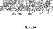 超伝導磁石を使用した好まれる方法は永久磁石構造を図10に示されているような構造と同様な構造で置き換えることである。図において、超伝導コイル102a、102bは高温超伝導体で構成することができ、コギング力を最小にするような様式で磁束を分配するために使用される磁極端(pole tip)104とともに積層状のスチールポール(steel pole)103の周りに巻かれる。コイルのためのスチール鉄心(steel core)の使用は、必要な超伝導コイルの寸法及び制御コイルの寸法を減少させるという長所を有する。スチール鉄心はまた、低温で実施されるという事実によって合成される、超伝導体内の渦電流損失を減少させる。  The preferred method using superconducting magnets is to replace the permanent magnet structure with a structure similar to that shown in FIG. In the figure, the