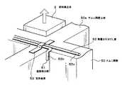 図4は、熱電対51の引き出し管52をチムニ隔壁上端50aに取り付けるための取り付け構造を示した図である。ここで、チムニ隔壁50はSUS等のステンレス鋼で構成される。熱電対引き出し管52は、SUSにシリカ等のミネラルパウダーを充填させた管で構成され、その中に熱電対51とそれに接続されたケーブル(不図示)が導入される。引き出し管52内の熱電対51の位置は、任意の測定部位に配置されるようにしてある。この熱電対引き出し管52は、図示のように、例えば支持金具53によって、チムニ隔壁上端部50aに、ボルト54などの固定手段で固定される。  FIG. 4 is a view showing an attachment structure for attaching the