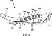 カテーテル100は、遠位端120に接続された複数の相隔する電極132,134、および136を備える。一実施形態において、電極132〜136は、環状電極を備える。特定の実施形態において、環状電極134および136は、組織マッピング機能のための電極対として作動する。さらに、電極130および132が、組織マッピング機能のための電極対として作動し得る。カテーテル100は、細長本体105に沿って間隔をおいた複数の組織配向検出器140,142、144、および146をさらに備える。図9に示されるように、組織配向検出器140は、細長本体105の遠位先端近くに配置され、したがって、検出器140は、先端電極130に対して近接する。同様に、検出器146は、遠位端120の残りの素子に近接して配置され、遠位端120の位置を配向するためか、または遠位端120の位置を検出するために使用され得る。