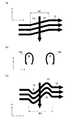 ステップS5で、補正電流成分に基づいて初期GCコイルパターンを変形する。補正電流成分を初期GCコイルパターンに沿う電流成分に追加し、変形された電流成分を、図5(a)に示すようにy方向傾斜磁場シールドコイルyGSCのコイルパターンとして、修正GCコイルパターンを完成させることができる。具体的には、図9(a)に示す渡り線14に沿う電流成分に対して、図9(b)に示す補正電流成分18a、18bを追加・合成し、図9(c)に示すように戻り線13となす90度以下の角度が、隣接する本線12間を直線で結んだ場合の戻り線13となす90度以下の角度より小さくなるように蛇行した渡り線14に変更している。  In step S5, the initial GC coil pattern is deformed based on the correction current component. The corrected current component is added to the current component along the initial GC coil pattern, and the modified current component is used as the coil pattern of the y-direction gradient magnetic field shield coil yGSC as shown in FIG. Can be made. Specifically, correction