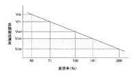 すなわち、上記図4に示す変倍率と原稿搬送速度の相関関係において、横軸の変倍率と縦軸の原稿搬送速度とを1:1で対応付ける制御データは、画像処理装置1で設定可能なすべての変倍率に関して、予め制御テーブルに登録してもかまわないが、本発明の実施の形態においては、メモリ容量の制約などの理由で、代表的な変倍率に関してのみ、上記制御データを離散的に制御テーブルに登録し、この制御テーブルを参照して原稿搬送速度を決定する仕組みを採用している。ここでは、一例として、制御テーブルに登録される代表的な読み取り倍率が、50%、71%、100%、141%、200%の5つであって、変倍率=50%に適した原稿搬送速度がV50、変倍率=71%に適した原稿搬送速度がV71、変倍率=100%に適した原稿搬送速度がVref、変倍率=141%に適した原稿搬送速度がV141、変倍率=200%に適した原稿搬送速度がV200として、制御テーブルに登録されているものと仮定する。  That is, in the correlation between the scaling factor and the document conveyance speed shown in FIG. 4, the control data for associating the scaling factor on the horizontal axis with the document conveyance speed on the vertical axis 1: 1 is all that can be set by the