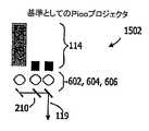 図11は、実施形態による機械的に連結される回路基板1102を含む統合型フォトニクスモジュールの少なくとも一部分の斜視図である。回路基板110は、任意に、統合型フォトニクスモジュール102の統合型光学エンジン部分114の構造部分を形成してもよい。種々の実施形態によれば、回路基板1102は、センサ、光源ドライバ、スキャナコントローラ、映像コントローラ電子機器およびメモリのうちの1つまたは複数を含んでもよい。上述したように、種々のセンサ、光源ドライバ、スキャナコントローラ、映像コントローラ電子機器およびメモリは、従来のマイクロプロセッサまたはマイクロコントローラおよび関連構成要素、たとえば、1つの統合型ASIC、2つ以上のASIC、2つ以上のASICと1つまたは複数のマイクロプロセッサ(DSPまたは従来のCISCまたはRISCマイクロプロセッサなど)、メモリ(映像メモリICなど)、他の統合構成要素、別個の構成要素およびソフトウェアを含むが、これらに限定されるわけではないさまざまな形態をとってもよい。さらに、映像信号を好ましいフォーマットに変換するために動作可能な媒体モジュールは、コントローラの中および回路基板1102の上に統合されてもよい。MEMSスキャナ120および光源116は、回路基板1102に対して直接的にインターフェイスをとってもよい。  FIG. 11 is a perspective view of at least a portion of an integrated photonics module including a mechanically coupled