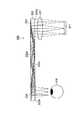ここで、この第2の反射型体積ホログラムグレーティング26に入射した入射光は、第2の反射型体積ホログラムグレーティング26に対して小さな回折効率しか有さず、その大部分が第2の反射型体積ホログラムグレーティング26を透過し、第1の導光板22を透過して、光射出口22bから射出され、観察者の瞳16に入射する。  Here, the incident light incident on the second reflective volume hologram grating 26 has a small diffraction efficiency with respect to the second reflective volume hologram grating 26, and most of the incident light is the second reflective volume hologram. The light passes through the hologram grating 26, passes through the first