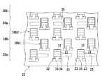 本実施態様におけるコネクタ本体21は、電気的に絶縁性の合成樹脂からなり、水平断面概略矩形状をなす、板状体として形成されている。該コネクタ本体21に、圧入溝23や貫通孔を含む複数のコンタクト収容凹部22が、図13に示されるように、所定のピッチで千鳥状に配列されている点では、上記第1の実施態様と全く同じである。本実施態様では、図13に示されるように、グランド用雌コンタクト30aが挿入されるコンタクト収容凹部22に連通する、後述するグランド用雄コンタクト50aが挿入される収容溝部25がコネクタ本体21に形成されている。収容溝部25は、コンタクト収容凹部22にグランド用雌コンタクト30aが挿入されたとき、該雌コンタクト30aの押圧部31と挟持部34との間に対応する位置からコンタクト収容凹部22の左または右方向に延在するように形成される。形成された収容溝部25は、グランド用雌コンタクト30aが挿入されるコンタクト収容凹部22を構成する前後方向に延在する側壁に対して、直交するように形成される。収容溝部25は、図13に示されるように、該収容溝部25が連通する収容凹部22に対して前後方向斜めに隣接するコンタクト収容凹部22を概ね越える位置まで左または右方向に延びている。  The connector